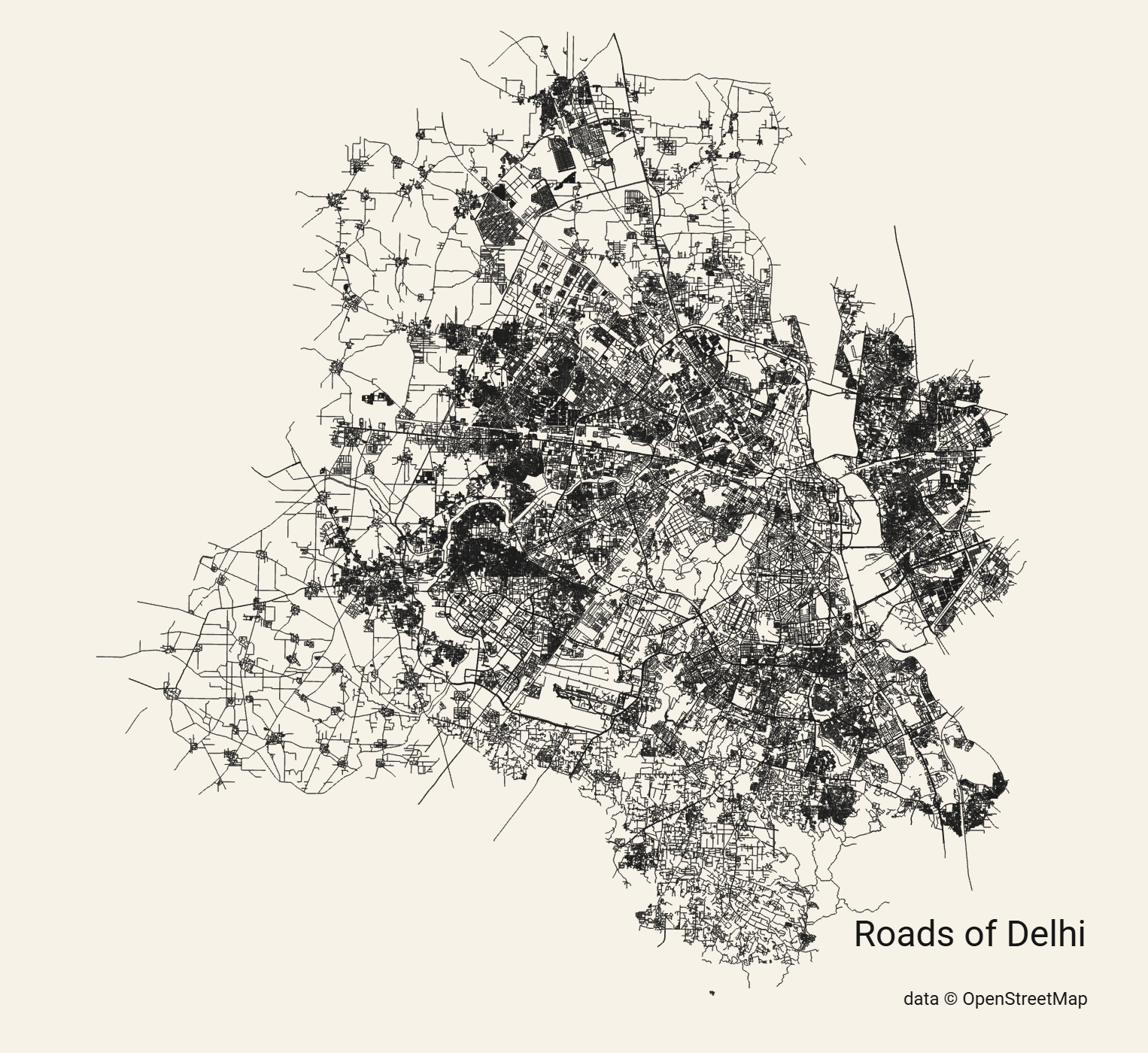 A map of Delhi’s roads, largely for aesthetic reasons. Made using City Roads